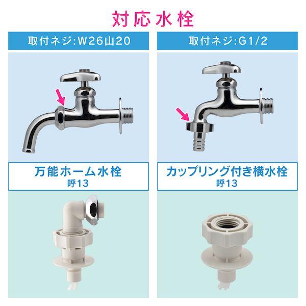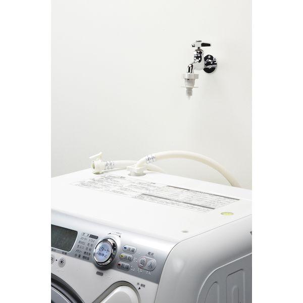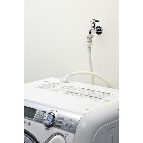 カクダイメーカーお問い合わせ:06-6538-1124【商品説明】●水栓と洗濯機給水ホースをワンタッチで接続できるニップルです。●呼び13の万能ホーム水栓・カップリング付水栓に取付できます。(取付対応ネジ:W26山20・G1/2)●自動閉止機構(ストッパー)付きのため、万が一ホースが外れた場合でも瞬時に給水を停止します。●吐水口は回転式の為、どの方向にもホースを接続できます。●ほとんどのメーカーの給水ホースに取付可能です。
