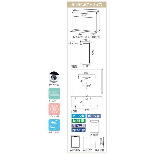 【商品説明】●A4サイズ封筒、回覧板等の大型郵便物が出し入れらくらく!●材質/仕上げ ステンレスSUS304、NO4研磨、樹脂成型品●外形サイズ(幅×奥行×高さ) 375×150×300●投入口サイズ(内寸)幅×高さ 348×50●表札 ネームプレート●鍵 ダイヤル錠●前入れ前出しタイプ