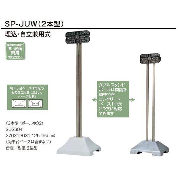 【商品説明】●埋込・自立兼用式●2本型:ポールΦ32●材質/仕上げ ステンレス、樹脂成型品、その他●外形サイズ(幅×奥行×高さ) 270×120×1125●ダブルスタンドポールは間隔を調整できコンクリートベース1つ穴、2つ穴に対応できます。●物干し台ベースは市販のものをご用意ください。