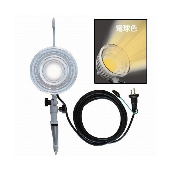 【商品説明】【用途】キャンプ、レジャーの照明、車、機械整備作業灯、看板照明、庭先、駐車場、店先の照明、防犯用。【機能・特徴】拡散フィルターと反射鏡で広範囲を均一に照らします。防雨防塵IP65仕様で環境を選ばず設置できます。35ワットLED電球で省エネルギー・長寿命です。アルミニウムとポリカーボネート製で頑強構造です。吊り下げフック・固定用バイス付です。2芯3芯兼用プラグです。【仕様】●消費電力:35W。●明るさ:電球色3000Lm。●色温度:3000K。●LED寿命:約40000時間(使用環境25度)。●電源ケーブル:5m。【注意事項ほか】●電球交換式ではありません。LEDの寿命がきましたら、買い替えをお願いします。●本体は防雨使用ですが屋外で雨に濡れる場合は防雨使用の延長コードが必要です。電動工具 作業 警告 防犯灯 投光器 替え球