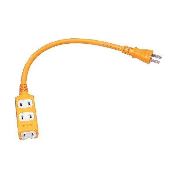 【商品説明】【用途】15A3ツ口スリムショートタップ。【機能・特徴】耐寒性に優れたやわらかい電線を使用した延長コードです。【仕様】●定格:15A・125V。●コンセント:2PX3ツ口。●色:黄。●電線サイズ:VCT2芯X1.25sq。●コードの長さ:30cm。●屋内用。【材質】●導体:銅線。●栓刃:黄銅。●被覆:塩化ビニル。【注意事項ほか】●このコードは合計1500W以下で使用して下さい。この製品は屋内型です。屋外・湿気の多い場所では決して使用しないで下さい。●また濡れた手でのプラグなどの抜き差しは決してしないで下さい。プラグはきっちりと差し込んでお使いください。接触不良で発熱する原因となります。●コードは束ねて使用したり、上から物を載せないで下さい。焼損の恐れがあり、火災の原因になります。電動工具 電工ドラム コード ショートタップ