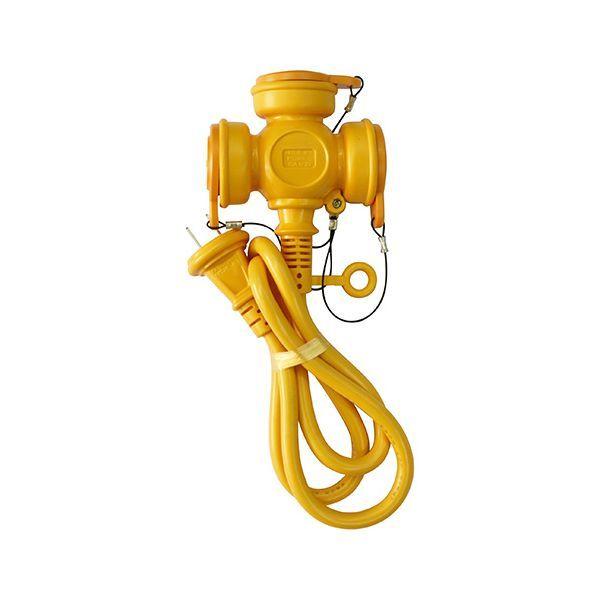 【商品説明】【用途】15A3ツ口30センチメートル防雨型ショートタップ。【機能・特徴】耐寒性に優れたやわらかい電線を使用した延長コードです。屋外型の防雨型ショートタップです。【仕様】●定格:15A・125V。●コンセント:2PX3ツ口。●色:黄。●電線サイズ:VCT2芯X1.25sq。●コード長:30cm。●屋外型。●防雨キャップ付。【材質】●導体:銅線。●栓刃:黄銅。●被覆:塩化ビニル。【注意事項ほか】●このコードは合計1500W以下で使用して下さい。●この製品を濡れた手でのプラグなどの抜き差しは決してしないで下さい。プラグはきっちりと差し込んでお使いください。接触不良で発熱する原因となります。●コードは束ねて使用したり、上から物を載せないで下さい。焼損の恐れがあり、火災の原因になります。電動工具 電工ドラム コード ショートタップ
