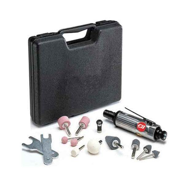 【商品説明】【用途】金属、木工の修正、仕上作業。【機能・特徴】グラインダーと砥石のセットです。ロータリーバー、ブラシを付けての加工や磨き、サビ落としにも便利です。【仕様】●空気消費量:170L/分。●最大使用圧力:0.59MPa。●無負荷回転数:25000回/分。●本体サイズ:寸法(長さ155X奥行42X高さ33mm)・重量(350g)。●空気接続口:RC1/4(PT1/4メス)。●推奨コンプレッサ:2馬力以上。●セット内容1:ダイグラインダー・コレットチャック(6.35・6.0・3.18mm径)・軸付砥石(6.35mm径X5個・3.18mm径X5個)。●セット内容2:コレットチャック取付用スパナX2個・プラスチックケース・クイックジョイント(プラグ)R1/4(PT1/4オス)。電動工具 エアーツール アネスト岩田