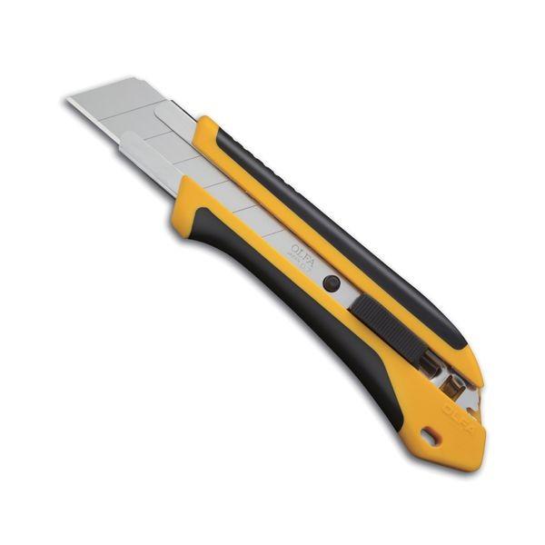 【商品説明】【用途】紙や合板をはじめ、厚物を切る作業。【機能・特徴】特大サイズながら、滑らず握りやすさを追求したX(エックス)デザインのラバーグリップにより、抜群の使いやすさを実現しました。ワンタッチでしっかりロックできる便利なオートロック式です。【仕様】●替刃式。●オートロック式。●適合替刃:特大H刃・特専黒刃(特大H)・H型鋸替刃(木・プラ用)。【注意事項ほか】●刃物ですから取り扱いに注意してください。幼児の手の届かないところに保管してください。大工道具 金切鋏 カッター オルファカッター