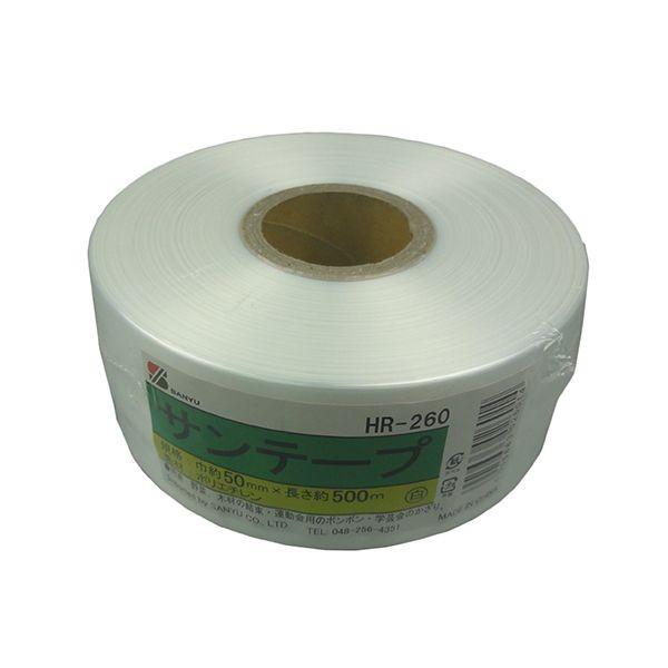 【商品説明】【用途】農業・梱包・家庭用。【機能・特徴】発色がきれいなので、装飾にも向いています。【仕様】●サイズ(約):幅50mm×長さ500m。●色:白。【材質】●ポリエチレン。資材 梱包資材 梱包ロープ