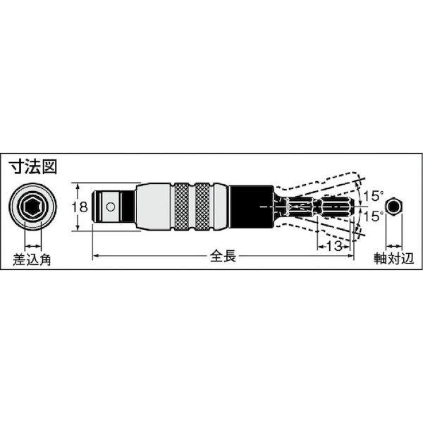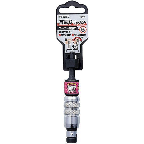 ベッセルメーカーお問い合わせ:0120-999-914【特長】●ビットを挿入して首振り・固定、両方使えるビットホルダです。●空回り指あて付です。【用途】●引き寄せ金物、かど金物の取り付けに。【仕様】●全長(mm):100●差込角(mm):6.35●シャンク径(mm):6.35【仕様2】●シャンク径:6.35mm【原産国】日本