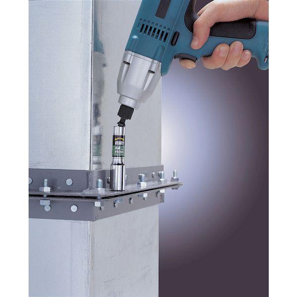 ベッセルメーカーお問い合わせ:0120-999-914【特長】●羽子板ボルト・ダクト連結締め付けなど、角際での作業に適しています。●首振り・固定、両方使えるソケットです。●押して固定させ、深穴ソケットとして使用できます。角際の締め付けには引いて首振りの状態で締め付けられます。●面接触型12角でナットに差し込みやすいです。【用途】●羽子板ボルト・ダクト連結締め付け等、角際での作業に。【仕様】●軸寸法(mm):6.35●全長(mm):113●対辺寸法(mm):10●ソケット外径(mm):16【仕様2】●12角面接触●18Vインパクト対応【材質/仕上】●クロムバナジウム鋼(Cr-V)【原産国】日本