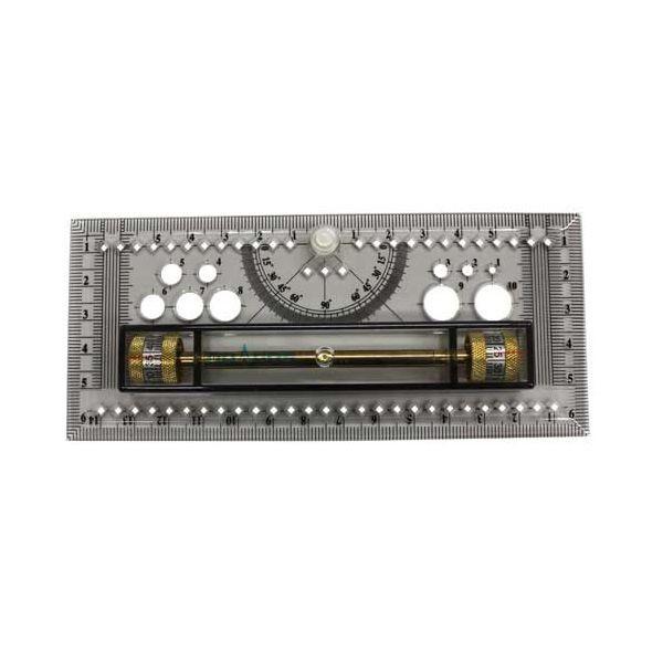 【商品説明】【用途】簡単に作図ができる便利定規です。【機能・特徴】重量がありスリップしにくい金属ローラーを採用。分度目盛も1度ピッチと精密仕様です。【仕様】●本体の四辺に目盛付。●ML-15は1~10mmφの円定規付。【材質】●本体PS+ローラ部:真鍮。大工道具 測定具 製図用品