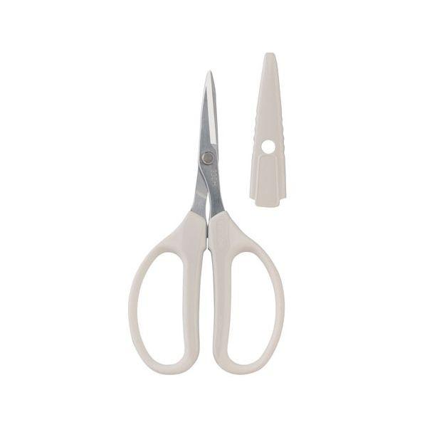【商品説明】【用途】生花切り、フラワーアレンジメント用です。【機能・特徴】抜群の切れ味と使いやすさを両立した鋏です。手に直接触れる部分には軟質樹脂を使用しています。刃の表面にはハードクロームをコーテイングし、ヤニがつきにくく、サビを防ぎます。テコの原理を応用するデザインで、刃先までしっかり力を伝え、小さな力でもシャープな切れ味を発揮します。【仕様】●色:白。●全長:160mm。●刃長:40mm。●重量:50g。●ハードクロームメッキ仕上。【材質】●刃:高炭素刃物鋼。●グリップ:PP。●キャップ:PP。【注意事項ほか】●刃先に直接触れないで下さい。特に刃部(はさみ)が重なる部分に手を入れないで下さい。園芸道具 鋏 園芸鋏