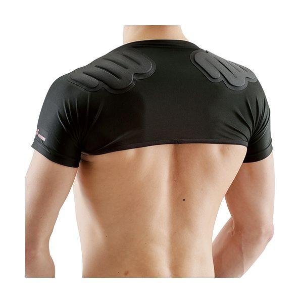 【商品説明】【用途】衝撃吸収パッド付肩サポーター。【機能・特徴】薄くて衝撃吸収力の高いパット(9Shuun)を内蔵することで、各部位への衝撃を緩和し保護します。薄手生地のためにアウターに干渉せず、伸縮性もよく体にしっかりフィットします。吸水速乾かつ通気性の高い生地を使用し、汗によるムレを軽減します。高い消臭機能があり、UVカット効果もあります。肩に背負って荷物や材料を運ぶ際の肩への衝撃を緩和しますので、重い荷物も楽に担ぐことができ、身体への負担を少なくします。【仕様】●サイズ:L。●適応上腕最