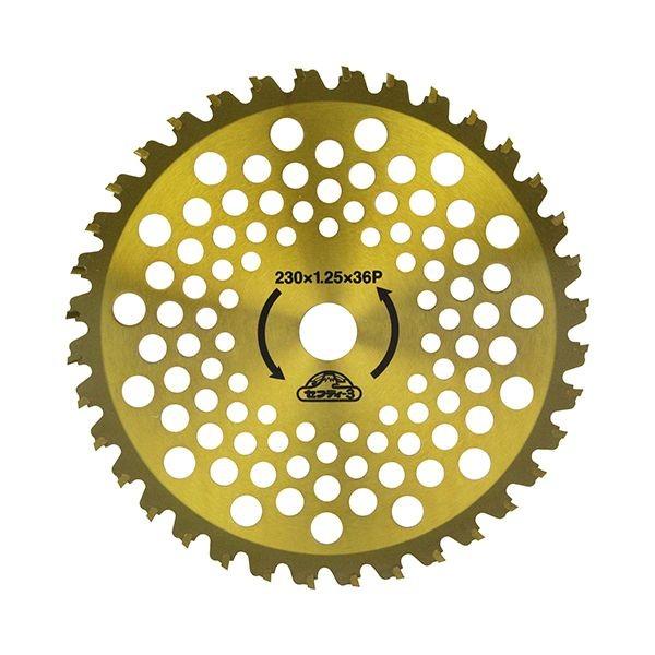 【商品説明】【用途】刈払機用チップソー。【機能・特徴】石、ブロック、壁際など障害物が多い所でも抜群の耐久性を発揮します。特殊超硬チップ採用により、チップ自体の耐久性が約15パーセント向上しました(同メーカースタンダードタイプ比)。溝付デカチップ+コブ付によりチップの取り付け強度が約50パーセント向上しました(同メーカースタンダードタイプ比)。【仕様】●外径:230mm。●刃厚:2.3mm。●刃数:36P。●台金厚:1.25mm。【材質】●本体:刃物鋼。園芸機器 刈払機 刈払機(チップソ