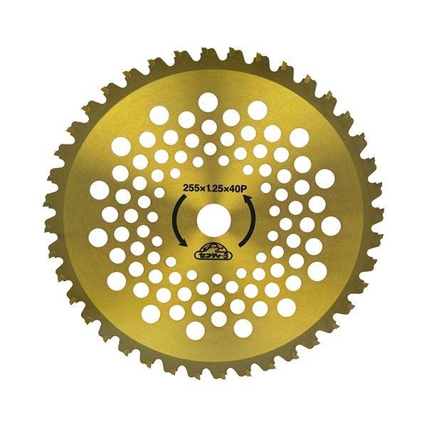 【商品説明】【用途】刈払機用チップソー。【機能・特徴】石、ブロック、壁際など障害物が多い所でも抜群の耐久性を発揮します。特殊超硬チップ採用により、チップ自体の耐久性が約15パーセント向上しました(同メーカースタンダードタイプ比)。溝付デカチップ+コブ付によりチップの取り付け強度が約50パーセント向上しました(同メーカースタンダードタイプ比)。【仕様】●外径:255mm。●刃厚:2.3mm。●刃数:40P。●台金厚:1.25mm。【材質】●本体:刃物鋼。園芸機器 刈払機 刈払機(チップソ
