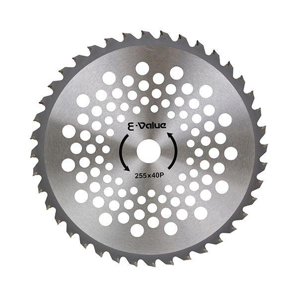 【商品説明】【用途】草刈り作業。【機能・特徴】強力斜め埋め込みのため耐久性抜群です。刃先全面研磨により切れ味抜群です。【仕様】●外径:255mm。●刃数:40P。●刃厚:2.0mm。●穴径:25.4mm。●刈払機推奨排気量:25cc以上。【注意事項ほか】●刈払機の安全カバーを適切に装着し、防災メガネ、ヘルメット、手袋、長袖、長ズボン、長靴を必ず着用して下さい。●作業をする時は、周囲に人がいない事を確認して少なくとも周囲15メートル以内には人を近付けないようにして行なって下さい。園