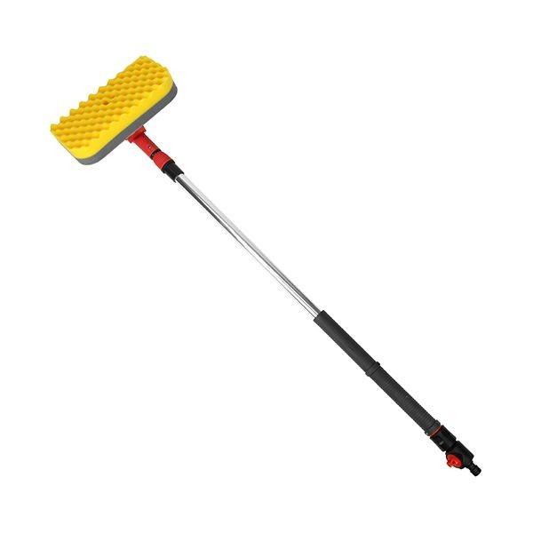 【商品説明】【用途】農機具の洗浄・車の洗浄・窓掃除等。【機能・特徴】ホースに繋げるだけで使用できます。止水・通水が簡単にできるバルブ付コネクター採用です。100cm~150cmで長さ調整できます。【仕様】●耐熱温度:60度。●伸縮式:約100~150cm。【材質】●頭部:ポリウレタンフォーム(台座・ABS樹脂)。●柄部:アルミニウム・ABS樹脂・PP。●柄部:TPE・合成ゴム。園芸用品 散水用品 散水パーツ