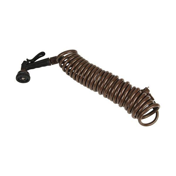 【商品説明】【用途】水まき・掃除・洗車など多用途対応の散水コイルホース。【機能・特徴】8mmホース採用で節水効果が従来品の約30%あります。使い終わればすぐに戻ります。藻が発生しにくいホースを採用しています。散水ノズルは7パターンです。【仕様】●ホース内径:8mm。●ホース外径:13mm。●有効使用範囲:7.5m。●散水パターン:ジェット・シャワー(大・小)・ジョウロ・ストレート・溢水・霧。●耐水圧:0.6MPa(7kgf/cm)。●耐熱温度:0~40度。●色:ブラウン。【材質】
