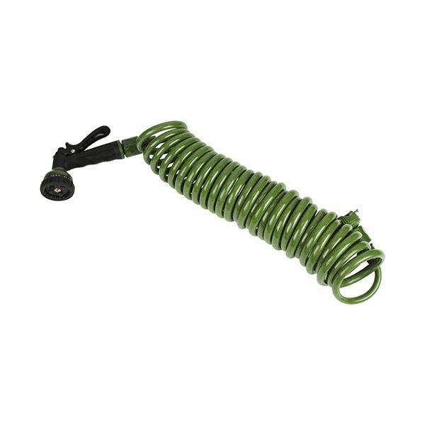 【商品説明】【用途】水まき・掃除・洗車など多用途対応の散水コイルホース。【機能・特徴】8mmホース採用で節水効果が従来品の約30%あります。使い終わればすぐに戻ります。藻が発生しにくいホースを採用しています。散水ノズルは7パターンです。【仕様】●ホース内径:8mm。●ホース外径:13mm。●有効使用範囲:7.5m。●散水パターン:ジェット・シャワー(大・小)・ジョウロ・ストレート・溢水・霧。●耐水圧:0.6MPa(7kgf/cm)。●耐熱温度:0~40度。●色:オリーブ。【材質】