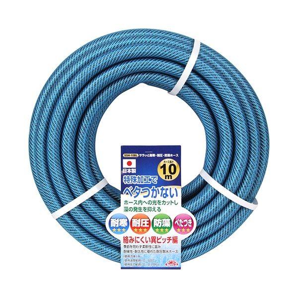 【商品説明】【用途】水まき・掃除・洗車など多用途対応の散水ホース。【機能・特徴】べたつきにくい特殊加工で、サラッと快適に作業できます。安心・安全の日本製です。光を透しにくく藻の発生を防ぎ、ホースの詰りを解消します。耐圧糸入りなのでストップ付ノズルにも装着・使用可能です。季節を問わず柔軟性に富み、耐候性・耐久性に優れた耐圧散水ホースです。【仕様】●色:ブルー。●ホース内径:15mm。●ホース外径:20mm。●ホース長さ:10m。【材質】●PVC。●ポリエステル糸。園芸用品 散水用品