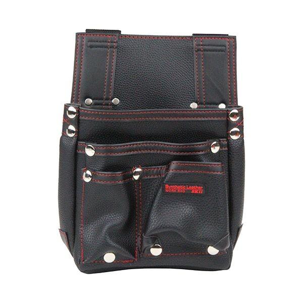 【商品説明】【用途】道具・工具の収納。釘の収納。【機能・特徴】内側に手のあたりがソフトな裏起毛素材を使用しています。開口部リベット補強で強度アップしています。バックスリット仕様のベルト通しです。【仕様】●サイズ:幅250×高さ310×奥行120mm。●カラー:ブラック。【材質】●合成皮革。収納用品 腰袋 工具バッグ