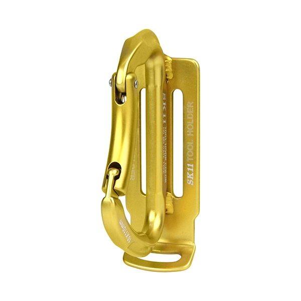 【商品説明】【用途】ベルトに通して工具類の吊り下げ。【機能・特徴】高強度、アルミ製鍛造カラビナです。落下防止コードの取り付けが可能です。【仕様】●色:ゴールド。●50mm幅ベルト用。●落下防止コード取付可能。●吊下げ工具重量:3kgまで。【材質】●アルミ。【注意事項ほか】●本品は体重を支える金具ではありません。●使用する工具には落下防止具を装着してください。●金具、リベット、溶接部分に異常がある場合は使用しないでください。収納用品 ツールフック 落下防止