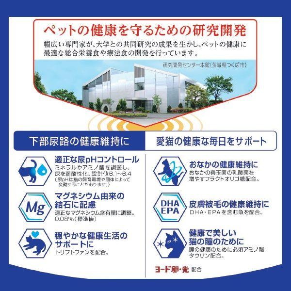 ●通常メーカーの都合により、ご注文後納期確定まで約5日かかります。稀に欠品等で、2週間以上手配状況確認にお時間がかかり、手配できない場合もあります。【商品説明】特徴マグネシウム由来の結石に配慮おなかの善玉菌の乳酸菌を増やすフラクトオリゴ糖配合尿pH設計値6.1~6.4マグネシウム含有量0.08%(標準値)仕様原材料:穀類(とうもろこし、コーングルテンミール)、肉類(ミートミール、チキンミール、チキンレバーパウダー)、豆類(おから)、油脂類(動物性油脂、ガンマ-リノレン酸)、魚介類(フィッシュミール:DHA・EPA源、フィッシュエキス)、糖類(フラクトオリゴ糖)、卵類(ヨード卵粉末)、シャンピニオンエキス、ビール酵母、ビタミン類(A、D3、E、K3、B1、B2、パントテン酸、ナイアシン、B6、葉酸、ビオチン、B12、コリン、イノシトール)、ミネラル類(カルシウム、リン、ナトリウム、カリウム、塩素、鉄、コバルト、銅、マンガン、亜鉛、ヨウ素)、アミノ酸類(メチオニン、タウリン、トリプトファン)、酸化防止剤(ローズマリー抽出物、ミックストコフェロール)保証成分:たんぱく質30.0%以上、脂質11.5%以上、粗繊維4.0%以下、粗灰分9.0%以下、水分10.0%以下、カルシウム0.7%(標準値)、リン0.7%(標準値)、ナトリウム0.7%(標準値)、マグネシウム0.08%(標準値)、尿pH設計値6.1~6.4エネルギー:(100g当たり)約375kcal原産国または製造地:日本※ペットフードです荷姿サイズ:175×145×290 mm 1.57 kg [荷姿サイズについて]