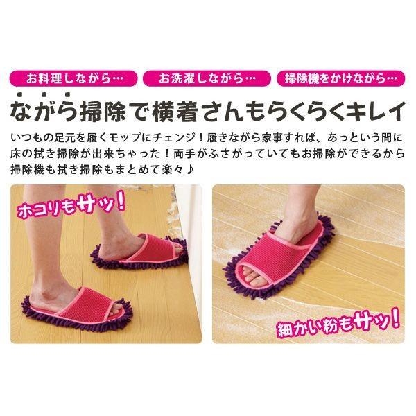 【商品説明】●歩きながらお掃除できちゃうスリッパ。●マイクロファイバーが床のホコリや水滴を拭き取ります。●濡れたフローリングもサッと一拭き!●洗濯機で丸洗いOK!●適応サイズ:22.5?25.0cm●材質:本体生地/ポリエステル、ナイロン モップ生地/ポリエステル100% 中材/ポリウレタン●中国製スリッパ モップスリッパ お掃除スリッパ マイクロファイバー モップ ほこり 掃除 フローリング 新生活