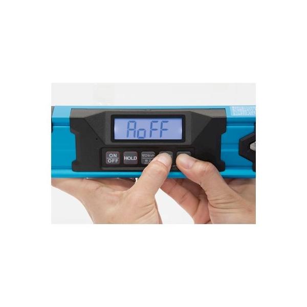 シンワ測定メーカーお問い合わせ:0120-666-899【特長】●0°、90°付近になると傾きによって3段階に鳴り方が変化するブザー機能付です。●水平気泡管を保護するカバー付で、カバーは汚れた時に取り外し水洗いできます。(気泡管は防水性能はありません)●気泡管に基準線があり、1/50勾配、1/100勾配が測定できます。●オートパワーオフ機能付です。●パイプ測定で安定するV字溝です。●操作しやすい大型ボタンです。●強力なヨーク付マグネットです。【用途】●水平、角度、勾配の測定に。【仕様】●長さ(mm):350●高さ(mm):56●厚さ(mm):26●マグネット:あり●デジタル表示部精度:0°・90°の時±0.1°、0°・90°以外の時±0.2°●気泡管感度:0.35mm/m=0.0201°●気泡管精度:±1.0mm/m=±0.0573°以内●電源:単4アルカリ電池2本(付属)●測定面溝:V字溝●気泡管色:ブルー【仕様2】●デジタル表示精度:0°・90°の時±0.1°、0°・90°以外の時±0.2°●デジタル表示最小単位:角度0.05°、勾配0.1%、立ち上がり1mm/m●防塵防水性能:IP65相当(デジタル測定ユニット部のみ)●オートパワーオフ:約10分●電源:単4アルカリ電池2本(付属)【材質/仕上】●本体、デジタルモジュール部:アルミ、ABS樹脂、ポリカーボネート樹脂●気泡管:アクリル樹脂●液体:石油系液体【セット内容/付属品】●単4アルカリ電池×2本【注意】●本製品には気泡管を調整するネジがありますが、お客様で調整された場合は精度保証の対象外となります。【原産国】中国