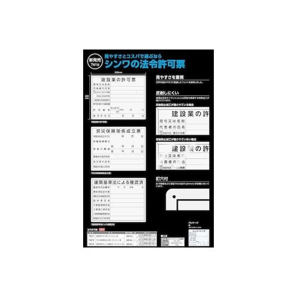 シンワ測定メーカーお問い合わせ:0120-666-899【商品説明】●文字の読みやすさに配慮したフォントを採用しました。●表面は日光やフラッシュによる反射を軽減する特殊加工が施されています。●釘で壁面などに固定できる釘穴(φ4mm)が四隅にあいています。●仕様●材質 ポリプロピレン合成樹脂●保管温度 -20~50℃●本体サイズ 400×500×1mm●製品質量 195g