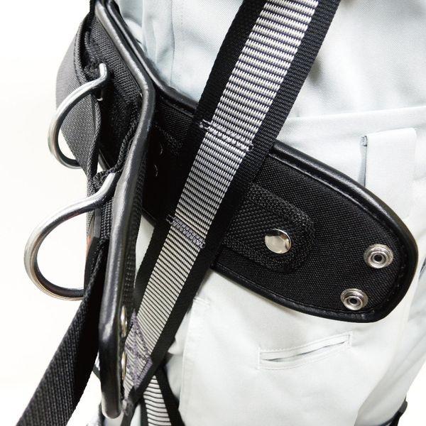 (株)TJMデザインメーカーお問い合わせ:0120-125577【特長】●動きやすいフラット形状です。●SEGサスペンダー・ハーネスに直接 取付け可能なインナーSEG構造採用です。●ソフトクッション&コシのある 芯材の2重構造で抜群のフィット感です。●新開発3way環です。●しっかり腰に密着するノンスリップ構造です。●型崩れしないリベットロック構造です。【用途】●SEGハーネス・サスペンダー対応ワークポジショニング用胴当てベルトセット【仕様】●色:黒●サイズ:S●幅(mm):94●長さ(mm):650●適応ウエストサイズ(cm):80【仕様2】●バックル形状:鍛造アルミ ワンタッチバックル●胴当てベルトサイズ(mm):650●参考胴ベルトサイズ:Sサイズウェスト80cmまで【材質/仕上】●胴当て本体:ナイロン●胴当てクッション:IEPE【注意】●墜落制止用器具(安全帯)ではありません。●取扱い説明書をよく読んでからご使用ください。●製品仕様は予告なく変更する場合がございます。●予めご了承ください。【原産国】日本
