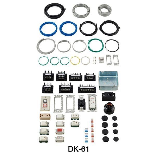 ホーザンメーカーお問い合わせ:06-6567-3132【商品説明】【線セット】●KIP 8mm2:4m●VVF 1.6mm×2芯:10m●VVF 1.6mm×3芯:5m●VVF 1.6mm×4芯 (黒白赤緑):0.5m●VVF 2.0mm×2芯 (外装青):3.5m●VVF 2.0mm×3芯 (外装青):2m●VVF 2.0mm×3芯(黒白緑):0.5m●VVR 2.0mm×3芯:1m●CVV 2mm2×2芯:2m●CVV 2mm2×3芯:2.5m●IV 1.6mm (緑):0.5m●IV 2.0mm (緑):0.5m●IV 2mm2 (黄):0.5m●IV 2mm2 (緑):0.5m●IV 5.5mm2 (黒):1m●IV 5.5mm2 (白):0.5m●IV 5.5mm2 (緑):2m●リングスリーブ(小):100個●リングスリーブ(中):10個●埋込連用取付枠:2個【器具セット】●ブロック端子2P(大):3個●ブロック端子3P(大):1個●ブロック端子3P(小):1個●ブロック端子4P(小):1個●ブロック端子6P(小):1個●ランプレセプタクル:1個●配線用遮断機:1個●引掛シーリング(角形):1個●単極スイッチ(埋込形):2個●2極スイッチ(埋込形):1個●3路スイッチ(埋込形):2個●押しボタンスイッチ:1個●コンセント(埋込形):1個●接地極付コンセント(埋込形):1個●動力用コンセント3P 15A 接地極付:1個●コンセント15A 250V 接地極付(埋込形):1個●埋込連用取付枠:2個●パイロットランプ(白):1個●パイロットランプ(赤):1個●アウトレットボックス:1個●ゴムブッシング (19):4個●ゴムブッシング (25):4個●差込型コネクタ 2本用(赤):5個●差込型コネクタ 3本用(青):3個●合格クリップ:5個