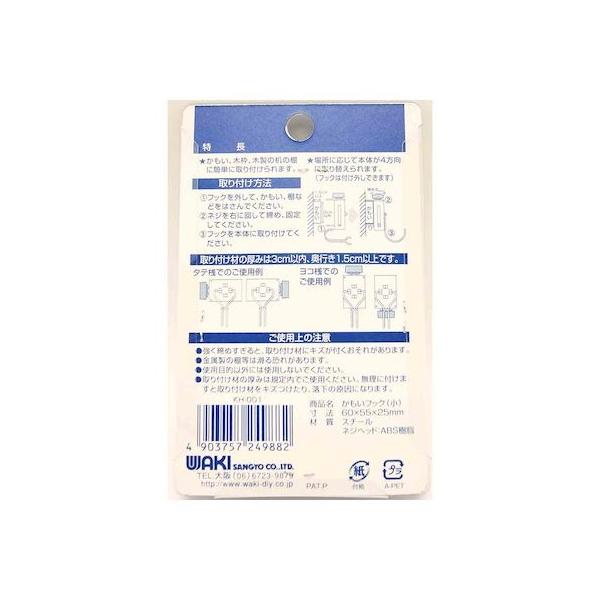 【商品説明】●暮らしの金具●はさんで止めるネジ式フック!●かもい、木枠、木製の机の棚に簡単に取り付けられます。●場所に応じて本体が4方向に取り替えられます。(フックは付け外しできます)●強く締めすぎると、取り付け材にキズが付くおそれがあります。●金属製の棚等は滑る恐れがあります。●使用目的以外には使用しないでください。●取り付け材の厚みは規定内でご使用ください。●無理に付けますと取り付け材をキズつけたり、落下の原因になります。●耐荷重(kg):2●取り付け材厚み(mm以内):30●奥行(mm以上):15●高さ(mm):60●横(mm):55●縦(mm):35●材質:スチール ネジヘッド ABS樹脂