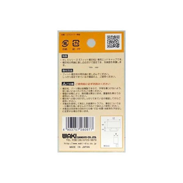 【商品説明】●空間収納シリーズ●クローゼット飾り棚などに●WLSシリーズ『フィット棚支柱』専用エンドキャップです。●棚支柱の両端に差し込むだけで固定でき、先端面を保護します。●しっかり固定できているか確認の上、ご使用ください。●フィット棚支柱の両先端部分保護の用途に。●棚支柱、パーツ類は金属製ですので、手等を傷つけないよう、取り扱いにはくれぐれもご注意ください。●壁面の状態により、耐荷重は異なります。重量物を乗せての使用はしないでください。●棚支柱への取り付けがしっかりできているか確認してからご使用ください。●本製品を使用して発生した破損やトラブル、事故については一切責任を負いませんので予めご了承の上、ご使用ください。●本製品は改良等の目的から仕様・寸法・材質・台紙等を予告なしに変更する場合があります。●安全荷重(kg):60●カラー:白●幅(mm):10●材質:エラストマー樹脂●商品4個