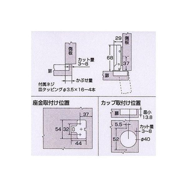 【商品説明】●ゆっくり閉まるダンパー付と、ピタッと閉まるキャッチ付をダブルで使うセット●開き角度2段階105°/85°●らくちん微調整 3次元調整●ワンタッチ着脱●扉の丁番に。●ダンパー付とキャッチ付を併用するセットです。●扉の全ての丁番をダンパー付にすると、扉の動きが悪くなります。●扉に対し丁番2個の場合、どちらか一方をダンパーにすることをおすすめします。●1個だけが壊れた場合でもその扉についている全ての丁番を取り替えて下さい!●扉の上下で違うメーカーの丁番を付けると、扉や丁番の破損をまねきます。●セット内容:ダンパー付1個、キャッチ付1個●かぶせ:半かぶせ●カップの径(mm):40●カップの深さ(mm):13.8●材質:スチール(ニッケルメッキ仕上)●商品2個