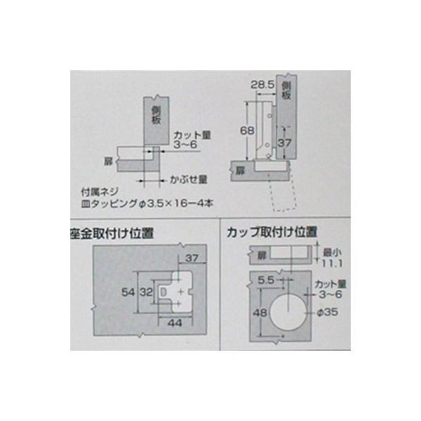 【商品説明】●ピタッと閉まらないキャッチ無●開き角度2段階105°/85°、らくちん微調整 3次元調整、ワンタッチ着脱●1個だけが壊れた場合でもその扉についている全ての丁番を取替えてください!扉の上下で違うメーカーの丁番を付けると、扉や丁番の破損をまねきます●扉の丁番に。●一個だけが壊れた場合でもその扉についているすべての丁番を取り替えてください。●扉の上下で違うメーカーの丁番を付けると破損の原因となります。●板が反っていたり特殊な丁番等、取替えが困難な場合もありますので、よくご確認ください。●取り付ける際、怪我をされないようご注意ください。●適合しないものも一部ございますので、よく確認してから取り付けてください。●キャッチ:無し●かぶせ:半かぶせ●カップの径(mm):35●カップの深さ(mm):11.1●材質:スチール/ニッケルメッキ仕上●商品2個