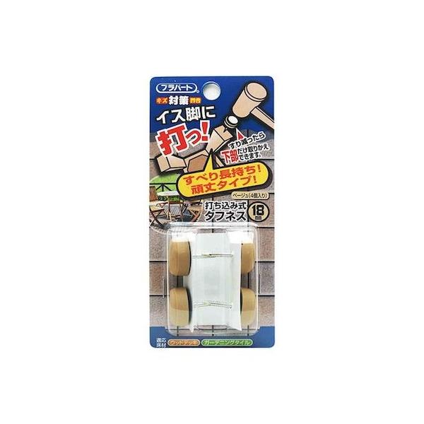 【商品説明】●床材や、使用箇所に対応できる打込み式イス脚保護材です。●すべりが長持ちする頑丈タイプです。●リング釘を使用しており、抜け止め防止に効果があります。●釘で固定するので丈夫で長持ちします。●床面のキズ、音防止に最適です。●椅子底部の面積範囲内のサイズをご使用ください。●本製品は屋内家具専用です。屋外での使用はお控え下さい。●用途以外のご使用はおやめください。誤った使用方法による事故・破損に関しまして、当社は一切責任を負いかねます。●本製品は改良等の目的から、仕様・寸法・材質・台紙等を予告なしに変更する場合があります。予めご了承ください。●適応床材:ウッドデッキ、ガーデニングタイル●カラー:ベージュ●φD(mm):18●材質:リング釘/鋼(3価クロメート)、上部/ナイロン、下部/ナイロン●商品4個