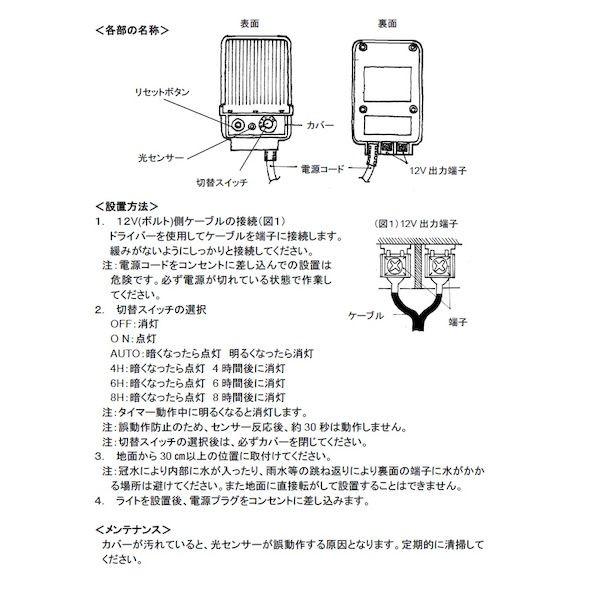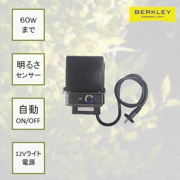 【商品説明】●BERKLEY(バークレー)製品指定の電源トランスです。合計W数が60W以内でご使用下さい。●容量:90VA●防雨型●明るさセンサーによる自動点灯消灯機能付(AUTO又は4,6,8時間後消灯)●常時ON/OFF可●W107×D90×H160●重量:2.2kg●出力AC12V●据付用ネジ付属●容量に余裕をもってライトを接続してください。
