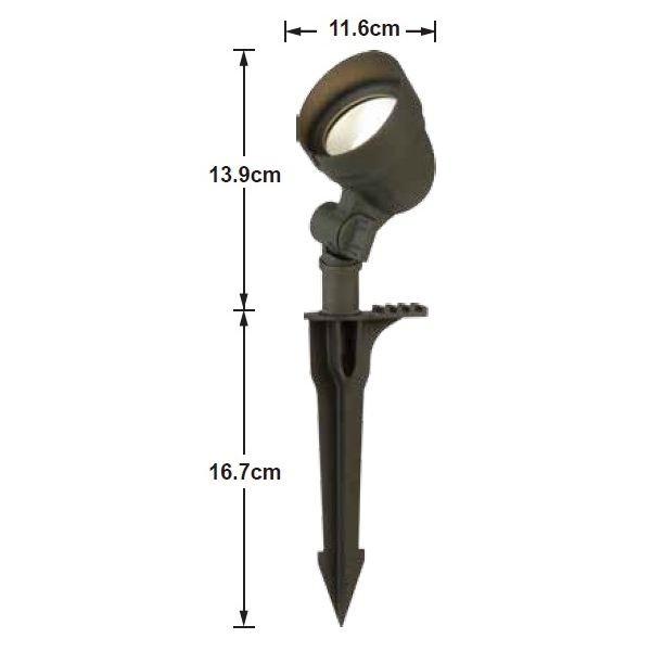 【商品説明】●H139mm×D116mm●電球色4.5WLED(明るさ:205ルーメン)●配光角度70°●照射距離めやす2m(周囲の明るさによって変わります)●ブラウン色●防雨型●アルミダイキャスト製●スパイク(杭)・接続コネクタ付属●LED交換不可●専用トランス及びケーブルが別途必要です●当社指定以外の電子トランスは使用できません