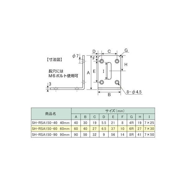清水メーカーお問い合わせ:06-6723-1971【商品説明】長穴があるのでボルト取付など施工シーンが広がります●長穴付きなので位置調整の仮止めやボルト取付など施工シーンが広がります。●ヘアライン表面仕上げが良好で、美しい研磨がされた国産材料を使用しています。●材質:ステンレスSUS304。●仕上:ヘアライン。●L字 L型 金折 隅金 補強 金物 金具 ステー