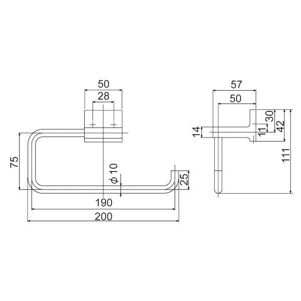 【商品説明】【リラインス(RELIANCE)le bain】とは…オリジナルから世界の逸品まで、水まわり空間を演出する会社です。バスルームアクセサリー、水栓金具、洗面ボウルなど住宅から商業施設向け商品まで幅広く取り扱っているサニタリーカンパニー。●特徴:シャープなスクエアデザインは都会的でモダンな空間を演出します。1800・シリーズのデザイン性に富んだサニタリー金物です。●材質:ブラケット:亜鉛ダイキャストリング:ステンレス●仕上・色:ブラケット:クロムメッキリング:研磨●寸法:W200xH111(mm)●浴室使用可否:使用可能●付属ビス有無:取付ビス付リラインス(RELIANCE)le bain 洗面金物 お風呂金物 バスアクセサリー トイレ金物 トイレ金具 お風呂金具 サニタリー用品