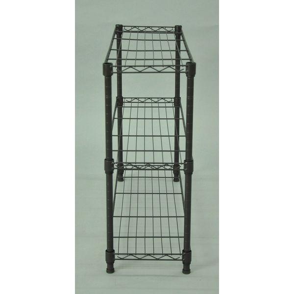 【商品説明】●使い方色々、幅と奥行が選べるスチールラックセット3段。●ブラウン塗装仕上げのオープンラック。●支柱にはガタツキ防止に便利なアジャスター付き。●棚板の高さは2.5cm刻みで自由に変えることが出来ます。●支柱径19mm。●スリーブ(支柱に取り付けて棚板を固定するためのパーツ)を取り付ける際、スリーブ同士の間に隙間が出来ます。使用には問題ございません。●商品サイズ:幅750×奥行250×高さ618mm●その他サイズ:パイプサイズ/直径19×厚み1mm、スチール棚板/線径4、3、2.2mm●静止耐荷重:棚板40kg/枚、全体80kg●素材:スチール(粉体塗装)●原産国:中国●組立:お客様組立品