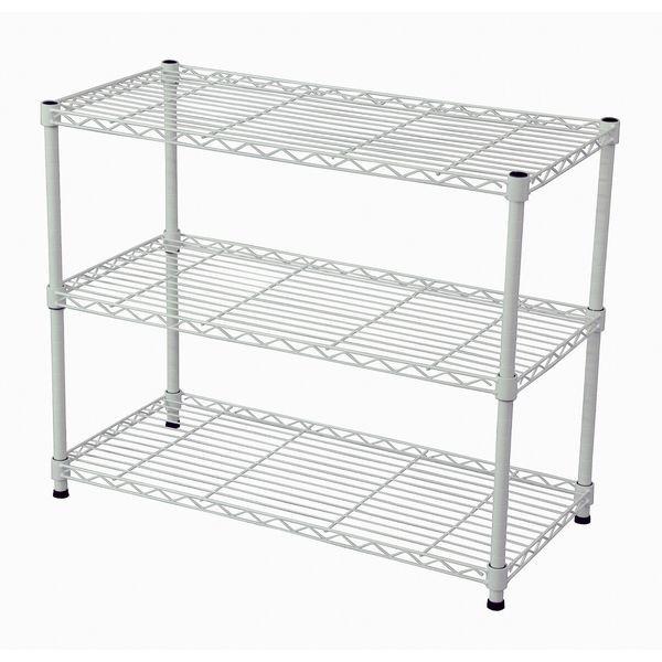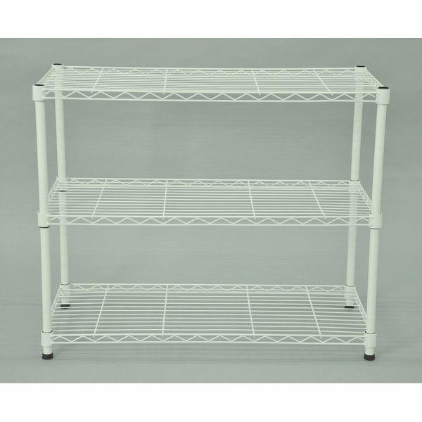【商品説明】●使い方色々、幅と奥行が選べるスチールラックセット3段。●ホワイト塗装仕上げのオープンラック。●支柱にはガタツキ防止に便利なアジャスター付き。●棚板の高さは2.5cm刻みで自由に変えることが出来ます。●支柱径19mm。●スリーブ(支柱に取り付けて棚板を固定するためのパーツ)を取り付ける際、スリーブ同士の間に隙間が出来ます。使用には問題ございません。●商品サイズ:幅750×奥行350×高さ618mm●その他サイズ:パイプサイズ/直径19×厚み1mm、スチール棚板/線径4、3、2.2mm●静止耐荷重:棚板40kg/枚、全体80kg●素材:スチール(粉体塗装)●原産国:中国●組立:お客様組立品