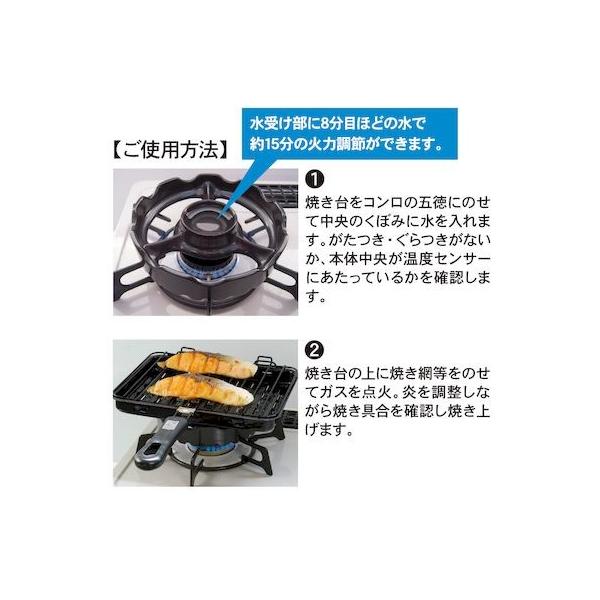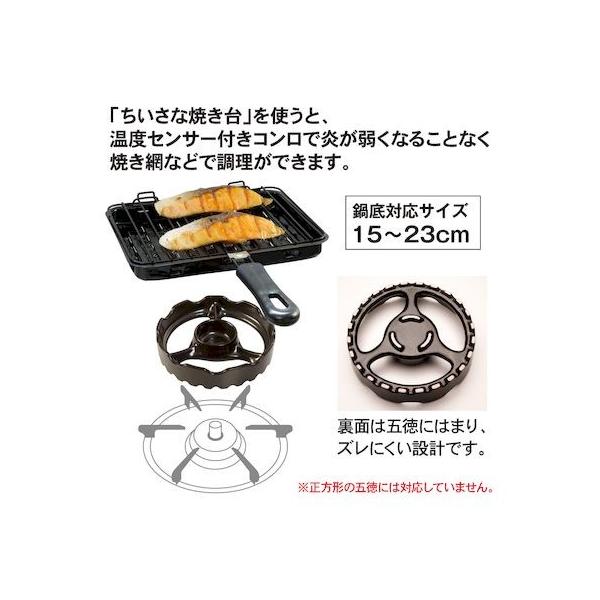 アルファックスメーカーお問い合わせ:06-4792-1193【商品説明】●「ちいさな焼き台」を使うと、温度センサー付きコンロで炎が弱くなることなく焼き網などで調理ができます。●温度センサー付きガスコンロの五徳の上で炎が弱まらないようにするための補助器具です。●中央のくぼみに水を入れて使用。センサー付きのコンロでも魚や餅が焼けます。●商品サイズ/重量(約)直径15・高さ3.3(cm)/265g●耐熱衝撃温度差:約700℃●材質:耐熱陶器(耐熱セラミックス)●原産国:日本製