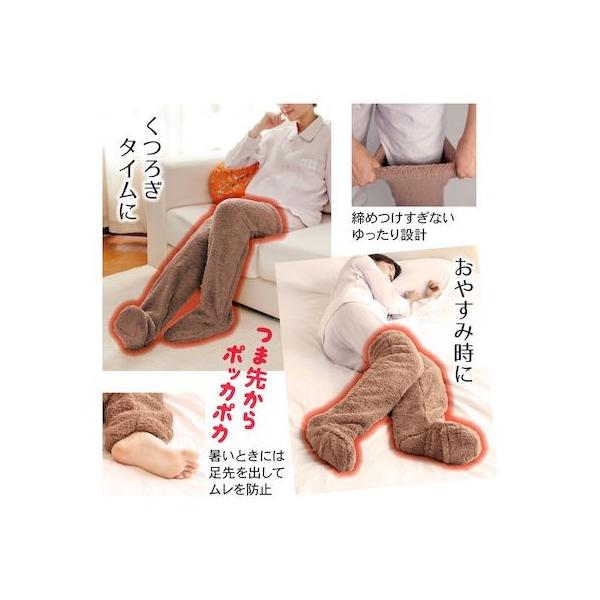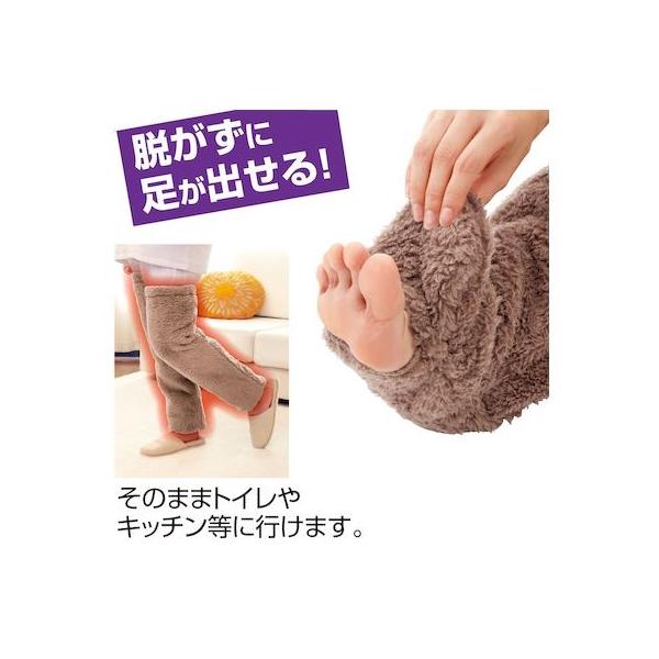 アルファックスメーカーお問い合わせ:06-4792-1193【商品説明】●足から暖め、全身ポッカポカ。部屋に居る時履きっぱなし。 ●毛足の長いふわふわした生地がやさしく足を包み込み、段違いの暖かいロングカバーが寝る時の寒さから守ります。●足が出せるのでスリッパが履けます。暑いときには足先を出してムレ防止。●商品サイズ/重量(約):足:23.0~25.5(cm)、太もも周り55cmまで/片足:170g●材質:ポリエステル100%●原産国:中国