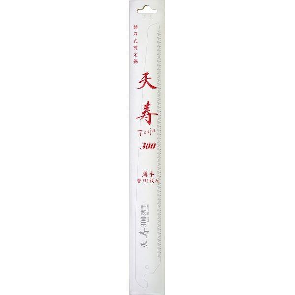 ●切れ味抜群!!薄刃で折れない果樹剪定鋸●刃:特殊鋼柄:ゴムグリップ鞘:プラスティック●刃渡:300mmピッチ:2.4mm板厚:0.6mm切幅:0.76mm●リンゴ・みかん・なし等の果樹剪定から森林の枝打ち、造園、庭木の剪定等の生木の切断時に抜群の力を発揮します。*錆びにくいニッケルメッキを施しています。●薄刃の鋸は最高の切れ味!!太さ50mm位の枝なら「スパッ」と一発切断。切断面も滑ら!●しなりのある鋸身非常に折れにくく、抜群の使い心地。●刃先はハードインパルスで切れ味持続。また、根詰まりしにくい加工を施しています。●非常に軽く長時間の作業も疲れません。果樹 剪定 のこぎり 天寿 金物 薄刃 替刃式のこぎり 鞘入鋸 300 本体