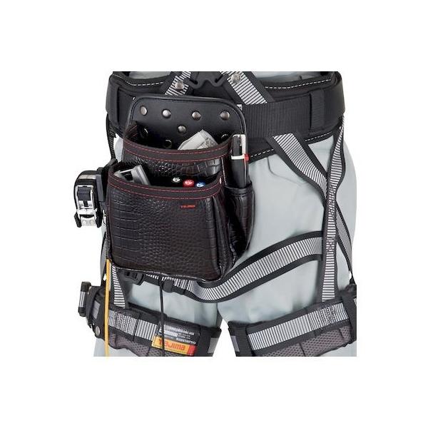 (株)TJMデザインメーカーお問い合わせ:0120-125577【特長】●クロコ調の光沢と凹凸が独特の高級感と存在感を放ちます。●腰周りの組み換えが簡単な着脱式です。●ベルトを外さず途中から差せる後付式ホルダーを採用しています。●高強度で作業性の良いしなやかな合成皮革です。●幅広い職人さんに適したスタンダード形状腰袋はベルトからの浮きを防止するサイドクリップ付(裏面)です。【仕様】●形状:2段中●色:黒●幅(mm):205●奥行(mm):130●高さ(mm):250●ベルト通し幅(mm):50【仕様2】●セフ取付収納物総重量:3kg対応●換え用品:セフ後付ホルダー用スライドストッパーSF-CHLDST【材質/仕上】●合成皮革【セット内容/付属品】●SF-THLD【注意】●必ず許容総重量以内でご使用ください。●取扱い説明書をよく読んでからご使用ください。●製品仕様は予告なく変更する場合がございます。●予めご了承ください。【原産国】台湾