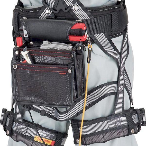 (株)TJMデザインメーカーお問い合わせ:0120-125577【特長】●クロコ調の光沢と凹凸が独特の高級感と存在感を放ちます。●腰周りの組み換えが簡単な着脱式です。●ベルトを外さず途中から差せる後付式ホルダーを採用しています。●高強度で作業性の良いしなやかな合成皮革です。●幅広い職人さんに適したスタンダード形状腰袋はベルトからの浮きを防止するサイドクリップ付(裏面)です。●番線カッターや水平器を入れる横入れポケット&両サイド接続環付です。【仕様】●形状:釘袋2段小●色:黒●幅(mm):200●奥行(mm):160●高さ(mm):260●ベルト通し幅(mm):50【仕様2】●セフ取付収納物総重量:3kg対応●換え用品:セフ後付ホルダー用スライドストッパーSF-CHLDST【材質/仕上】●合成皮革【セット内容/付属品】●SF-CHLD【注意】●必ず許容総重量以内でご使用ください。●取扱い説明書をよく読んでからご使用ください。●製品仕様は予告なく変更する場合がございます。●予めご了承ください。【原産国】台湾