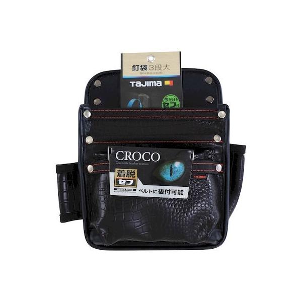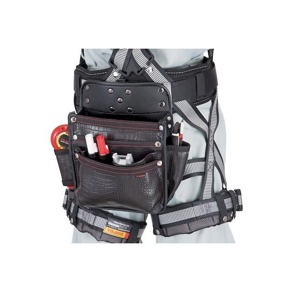 (株)TJMデザインメーカーお問い合わせ:0120-125577【商品説明】●機能●光沢と凹凸が独特の高級感と存在感を放つクロコ調 ●腰周りの組み換えが簡単な着脱式 ●ベルトを外さず途中から差せる後付式ホルダー採用 ●高強度で作業性のよいしなやかな合成皮革 ●幅広い職人さんに適したスタンダード形状 ●腰袋はベルトからの浮きを防止するサイドクリップ付(裏面) ●墨つぼやマーカー、釘打器を仕分ける専用ポケット付 ●擦ることの多い底部を耐摩耗性のあるターポリンで補強 ●「今だけセフ付」長期限定キャンペーン(セフ後付ホルダーSFCHLD)付 ●仕様●セフ取付収納物総重量:3kg ●対応ベルト幅:50mm ●用途:袋の厚みを抑えた鳶職人仕様の腰袋 ●換え用品:セフ後付ホルダー用スライドストッパーSF-CHLDST ●材質●合皮