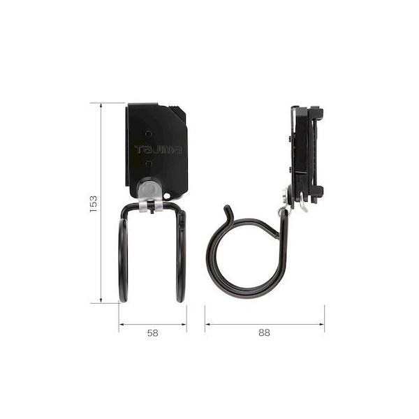 (株)TJMデザインメーカーお問い合わせ:0120-125577【特長】●現場要求強度を十分満たした頼れるスチール製です。●後付もでき、ベルトを外さずに腰周りの組み換えが簡単な着脱式です。●激しい動きにも横滑りしないスライドストッパー付です。●ダブルコーティングで着脱を繰り返しても安心なしっかりとした嵌合部です。●体の動きを邪魔しない自在ジョイントを採用しました。●工具は重力で回転するため落下しにくいです。●「今だけセフ付」長期限定キャンペーン(セフ後付ホルダーSF-CHLD)付【用途】●工具用ホルダーとして。【仕様】●色:黒●幅(mm):58●奥行(mm):88●高さ(mm):153●タイプ:横【仕様2】●装着工具:ハンマーセフ●セフ取付工具総重量:3kg以下【材質/仕上】●スチール【セット内容/付属品】●セフ後付ホルダーSF-CHLD【注意】●必ず許容総重量以内でご使用ください。●取扱い説明書をよく読んでからご使用ください。●製品仕様は予告なく変更する場合がございます。●予めご了承ください。【原産国】中国