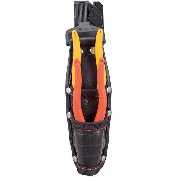 (株)TJMデザインメーカーお問い合わせ:0120-125577【特長】●クロコ調の光沢と凹凸が独特の高級感と存在感を放ちます。●腰周りの組み換えが簡単な着脱式です。●ベルトを外さず途中から差せる後付式ホルダーを採用しています。●高強度で作業性の良いしなやかな合成皮革です。●幅広い職人さんに適したスタンダード形状腰袋はベルトからの浮きを防止するサイドクリップ付(裏面)です。●背面部に樹脂プレートを組み込み、剛性力をアップしました。●横幅を極力抑えた省スペース設計です。【仕様】●形状:2本差し●色:黒●幅(mm):70●奥行(mm):100●高さ(mm):285●ベルト通し幅(mm):50【仕様2】●セフ取付収納物総重量:3kg対応●換え用品:セフ後付ホルダー用スライドストッパーSF-CHLDST【材質/仕上】●合成皮革【セット内容/付属品】●SF-CHLD【注意】●必ず許容総重量以内でご使用ください。●取扱い説明書をよく読んでからご使用ください。●製品仕様は予告なく変更する場合がございます。●予めご了承ください。【原産国】台湾
