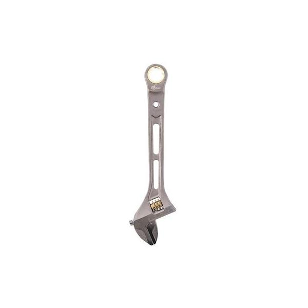 高儀メーカーお問い合わせ:0256-38-1001【商品説明】●狭い場所・配管・高所作業に●口開きワイド&軽量! ●落下防止コード取付穴付 ●ギアレンチ17mm ●モンキーレンチ最大口開き幅36mm●本体 ガンメタメッキ●サイズ 270×65×13