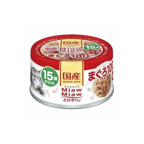 アイシアメーカーお問い合わせ:0120-712-122【商品説明】●まぐろをぜいたくに使用した国産品。●猫がとびつくおいしさにこだわって、まぐろエキスやa-iペプチドを絶妙なバランスで配合。●お部屋で暮らす愛猫の心の健康維持にも配慮。●15歳からの愛猫の健康維持に配慮して、ビタミンB群とコラーゲンペプチドを配合。●細かめフレークタイプ。●原材料:魚介類(マグロ、フィッシュペプチド(コラーゲンペプチドを含む)等)、たんぱく加水分解物、酵母エキス、オリゴ糖、増粘多糖類、調味料、ビタミン類(ビタミンB群を含む)●保証成分:粗たんぱく質10.0%以上、粗脂肪0.4%以上、粗繊維0.1%以下、粗灰分2.0%以下、水分88.7%以下●エネルギー:29kcal/缶●賞味期限:36ヶ月●原産国または製造地:日本●猫 フード ウェット ウェットフード キャットフード 缶 缶詰 猫缶 みゃうみゃう ミャウミャウ